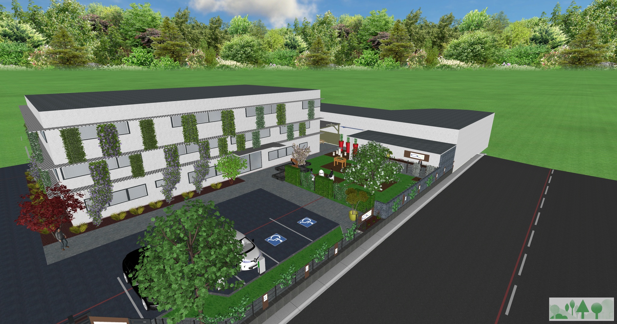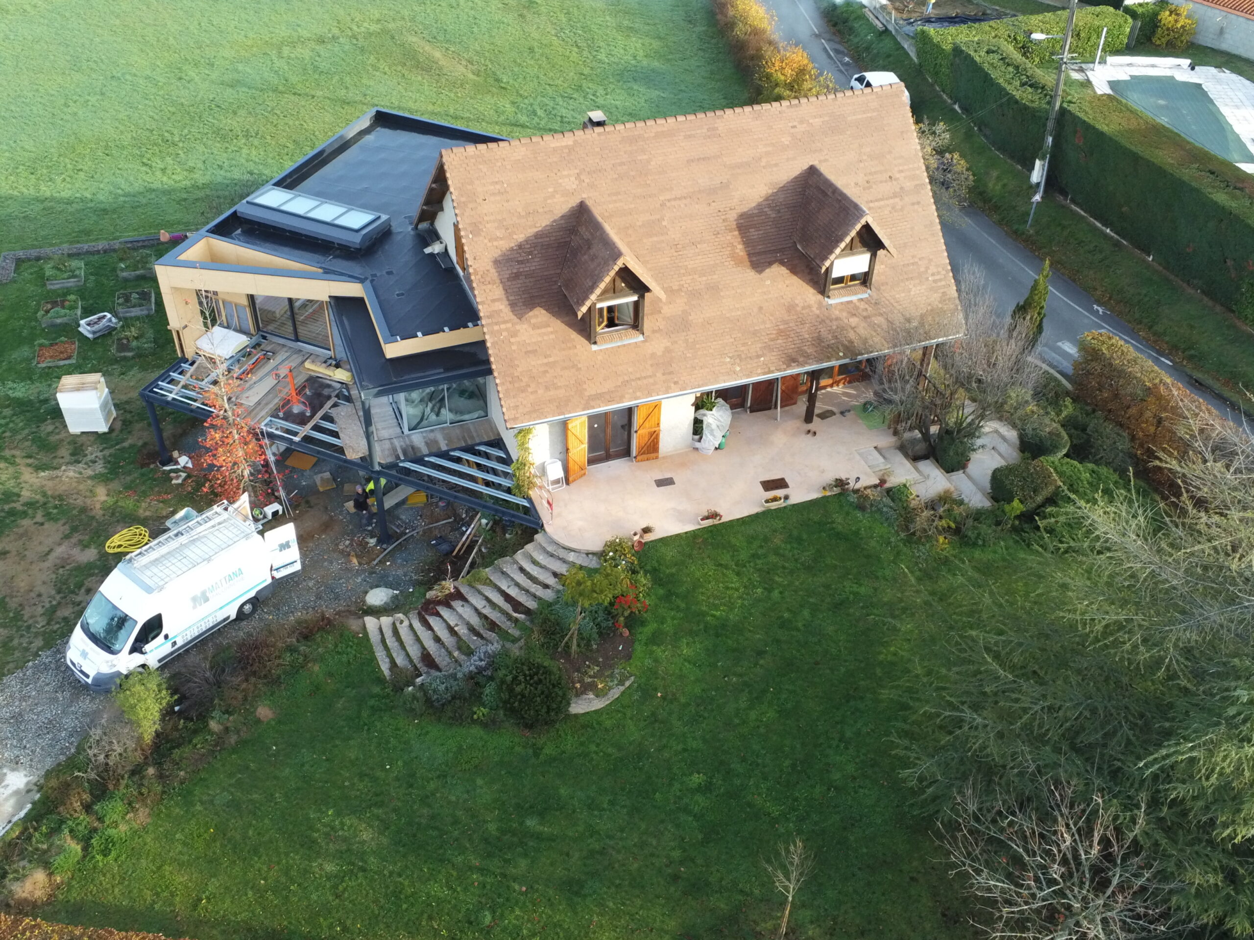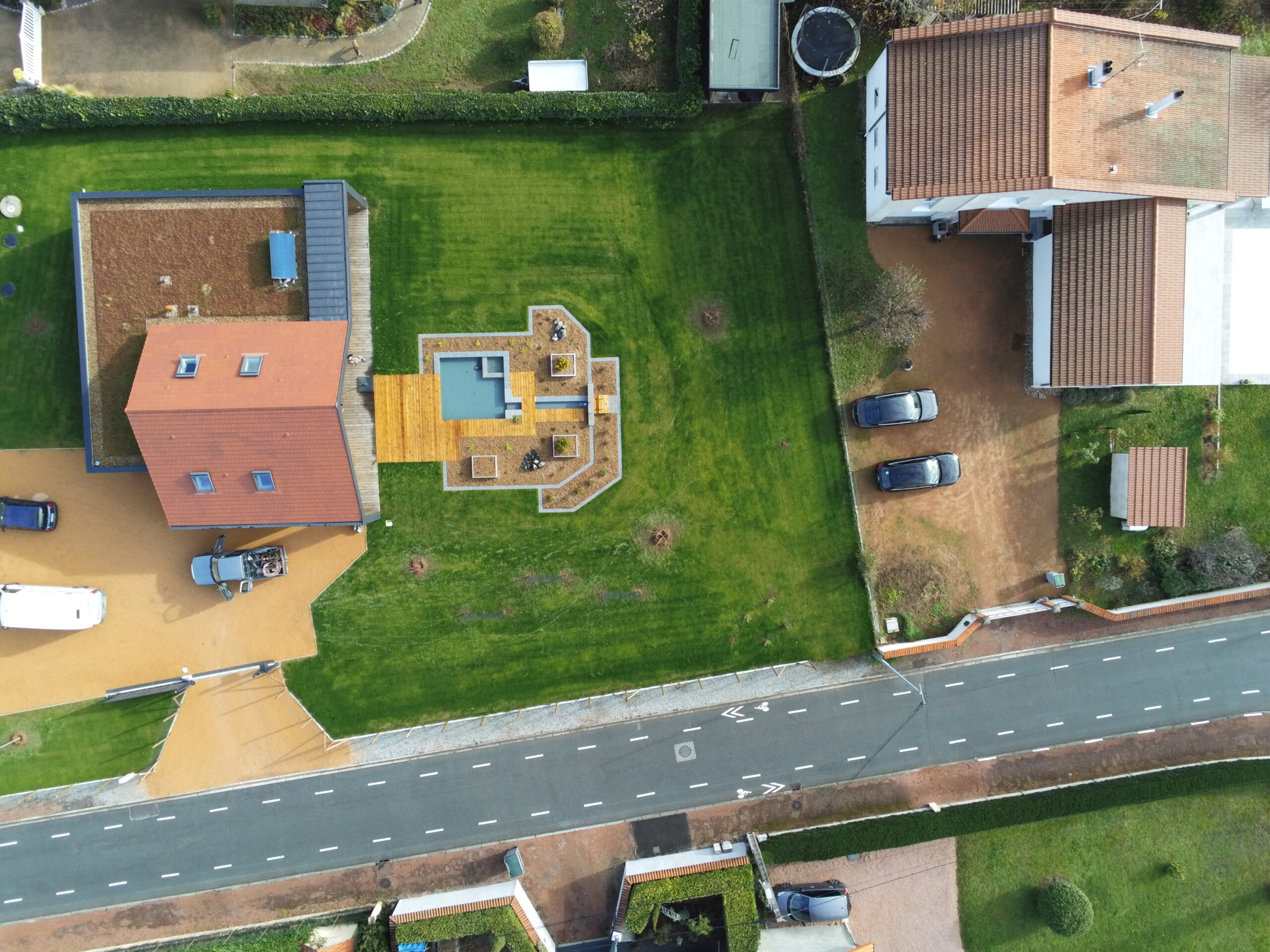 - Aménagement extérieur (terrasses, allées, murs végétaux, points d’eau, éclairages).